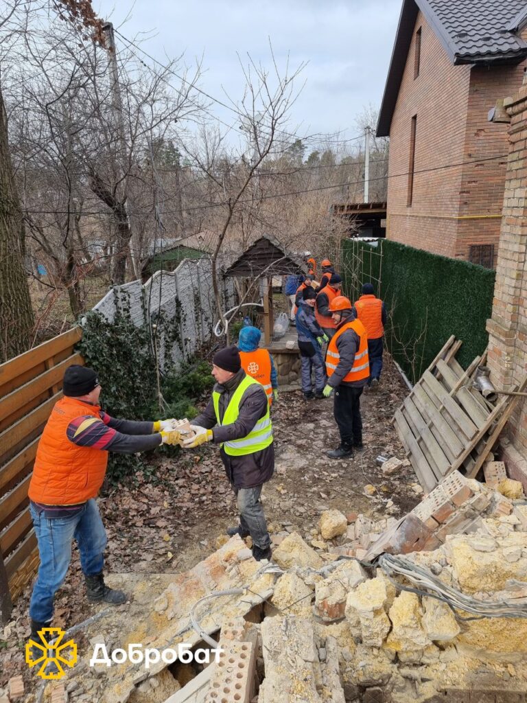 На Київщині добробатівці виїздили до Ірпеня, Димера та Демидова. Декілька разів були на локації в Ірпені, де внаслідок займання від ворожого «прильоту» було вщент зруйновано три приватні будинки. Там волонтери повністю розчистили від завалів територію одного з них. Також провели демонтажні роботи та взялися розбирати завали того, що ще до війни літнє подружжя з любов’ю називало домівкою. Їхній дім, ще в березні минулого року, прямим влучанням знищив ворожий «приліт», ймовірно, фосфорної бомби. Лишилися самі уламки. Надалі добробатівці продовжать роботи з ліквідації наслідків руйнувань.